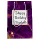 Un sac cadeau avec un beau motif abstrait au design marbré. Des couleurs violettes riches se mélangent avec des rubans tourbillonnants d'or faux, mélangeant et mélangeant les couleurs tout au long du design. Un carré avec une fausse bordure en feuille d'or superposée avec votre texte personnalisé à l'intérieur.