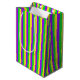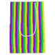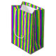 Sac cadeau moyen avec un motif rayé vert, jaune et violet. Personnalisable . Parfait pour Mardi Gras.