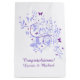 Les caractéristiques de conception ce un papillon et une vigne assez bleus s'épanouissent avec des accents pourpres sur un arrière - plan blanc pur. Le texte assortit la violette pourpre. Les prénoms de jeunes mariés, ou votre autre texte fait sur commande est dans la violette au fond. Élégant pour un mariage ou un cadeau nuptiale de douche, mais assez souple être employé pour une série d'occasions spéciales.