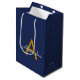 Sac Cadeau Moyen Marine Blue Gold Modern Script Girl Monogramme Nom