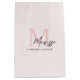 Sac Cadeau Moyen Monogramme minimal initial et nom Pastel rose