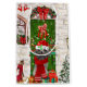 Poodle Dog Noël assis à l'extérieur de la maison décorée avec la couronne de Noël, le sapin de Noël est une idée cadeau de Noël parfait pour les amoureux de les chiens.