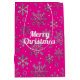 Sac Cadeau Moyen Noël rose élégant avec des flocons de neige élégan