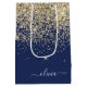 Sac Cadeau Moyen Or Glitter Monogramme Script Nom Féminin Navy Bleu