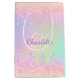 Un fond holographique licorne arc-en-ciel en rose, violet, or rose et vert menthe avec des gouttes de paillettes fausses, aspect de peinture qui coule. Personnalisez avec un nom et des initiales de monogramme. Le nom est écrit avec un style de lettrage manuscrit tendance. Peut être utilisé à la fois pour l'emballage de cadeaux et comme sac de faveur de fête pour les anniversaires, les douches de mariée, les douches de bébé.