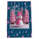 Sac Cadeau Moyen Pink Crochet Snowman hiver Wonderland