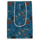 Ce Scuba Diver nager dans l'océan Le sac-cadeau moyen pour lui présente des illustrations dessinées à la main de squelettes plongeurs nageant dans l'océan parmi les coraux rouges. Le tout contre un élégant arrière - plan bleu foncé.
