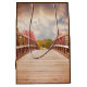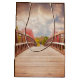 Un sac cadeau d'anniversaire avec une photo pittoresque. Un pont en bois qui mène à un chemin entouré d'arbres forestiers qui changent de couleur.