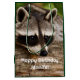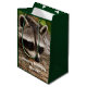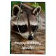 Un sac cadeau avec la photo d'un joli et curieux raton laveur reposant son visage sur une rondelle de bois. Adorable.