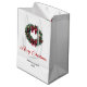 Sac Cadeau Moyen Red and gold pine wreath Christmas bag custom name