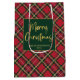 Sac Cadeau Moyen Red Tartan Plaid Gold Script Joyeux Noël