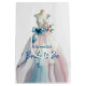 Conception de robe de mariée rose et bleue pastel avec le texte "à la belle future mariée"