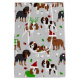 Chiens de Noël du mignon Cavalier King Charles Spaniel habillés de tenues de vacances festives, chapeaux de Père Noël et chandails de Jacquard avec des ornements de Noël éparpillés.