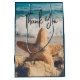 Un sac cadeau avec une photo pittoresque. Une grande étoile de mer dressée sur une plage de sable. Une belle mer bleue avec des vagues de surf blanc en arrière - plan.