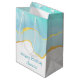 Un sac cadeau d'anniversaire avec un design estival serein. Image turquoise / aquarelle vert aqua avec une bordure ondulée en faux or. Élégant et adorable.