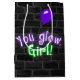 Panneau néon "You Glow, Girl" sur un mur en brique foncée.