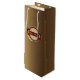 Ce sac cadeau en or et en bordeaux serait l'emballage parfait pour une bouteille de vin préférée.