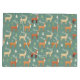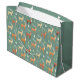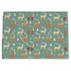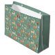 Des rennes de père Noël s'alignent contre un arrière - plan vert turquoise clair, entrelacés entre quelques simples arbres de Noël. Simple mais saisonnier, c'est un sac cadeau amusant et coloré pour les enfants de tous âges.