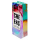 Sac cadeau de vin qui dit CHEERS avec votre salutation et nom(s). Conçu avec un design abstrait artistique soigné. Peinture aquarelle avec les couleurs mélangeant et mélangeant créant un motif marbré fluide. Un cadre blanc avec une fausse bordure en feuille d'or superposée avec votre texte personnalisé écrit à l'intérieur.