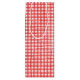 Mignonne figure fille avec cheveux, baskets, robe en vichy, collier de perle, et tenant un verre de vin rouge sur arrière - plan blanc. en vichy motif arrière - plan est verrouillé.