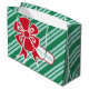 Un grand arc rouge orne cet aqua et ce sac cadeau de vacances rayé vert. Ce sac cadeau de Noël est idéal pour les hommes, les femmes, etc... Le design est issu de l'art original.
