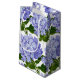 Ce sac cadeau est présenté en couleur blanche dans une finition brillante avec un joli imprimé de fleurs d'hydrangée bleu lavande.