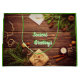 Sac cadeau de Noël décoré de cônes de pin et d'épices et sur fond de finition en bois... c'est amusant et festif! ! Joyeux Noël à tous !