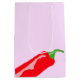 Ajoutez une touche de fougue à votre cadeau avec ce sac rose avec des piments de piment ludiques. Parfait pour une Saint Valentin chaude et épicée !