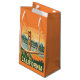 Offrez à vos cadeaux un air de côte ouest doré avec ce sac cadeau rétro à thème californien. Doté d'une illustration audacieuse du Golden Gate Bridge aux tons chauds du coucher de soleil, ce sac est parfait pour les souvenirs, les fêtes à thème de voyage, ou toute personne qui aime l'esthétique vintage. Une option d'emballage petite mais élégante qui apporte le soleil californien à toute occasion.