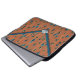 Énoncé de style chic et polyvalent, le design de cette Manche Ordinateur Portable en Néoprène est réalisé dans le style d'un sac d'embrayage d'enveloppe. C'est un motif qui ressemble à un tissu côtelé dans une couleur orange brûlée, avec des sphères émergeant à travers le tissu dans les tons jaune orange et bleu aqua. Les formes sont cachées comme si elles tombaient. Le rabat supérieur du porte-monnaie est bordé d'une bande de bleus texturés, avec un bord rouge très mince et orangé. Il y a, sur le sac à main, une fermeture en forme de diamant en argent bleuté à la pointe du rabat. Il s'agit d'un monogramme qui est configuré pour que vous personnalisiez, ou supprimiez si vous préférez.