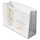 Montrez votre reconnaissance à vos mariages avec ce sac cadeau cadeau de mariage pour femme d'honneur. Parfait pour remplir avec un cadeau spécial pour montrer vos remerciements. Un joli couple d'oiseaux en ligne dessin graphique d'une cage ouverte d'oiseaux accrochée à un arbre de printemps fleuri avec des coeurs. Design mariage moderne et chic partie de la cage d'oiseau jaune romantique mariage fixe ensemble. Couleurs jaune vif avec une cage grise chaude sur un arrière - plan blanc. Customisez / personnalisez ces grands sacs cadeaux de faveur avec votre propre nom de demoiselle d'honneur. On lit actuellement Merci Bridesmaid Summer. © Dessin original et réalisé par Sarah Trett.