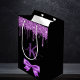 Un sac de faveur pour une fête d'anniversaire girly et glamour, enterrement de vie de jeune fille ou baby shower. Fond noir décoré de gouttes de strass faux violet, aspect peinture qui coule et un nœud. Avec le texte : Merci ! Personnalisez et ajoutez votre nom. Le nom est écrit avec un style de lettrage à main levée tendance avec des fioritures. Pour garder les fioritures, supprimez simplement le nom d'exemple, laissez les espaces ou émojis devant et après le nom.
