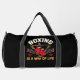This black duffle bag features a striking design centered around boxing, with two red boxing gloves hanging in a stylized ring. The bold text "BOXING" is at the top, and "IS A WAY OF LIFE" is below, framed by stars and an abstract triangular shape. This bag is perfect for athletes and passionate boxing enthusiasts. Edit color of the bag caps and body in the Design tool to your favored colors.