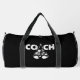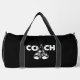 This sleek black duffle bag is designed for a dedicated boxing coach. The word "COACH" is prominently displayed in a distressed white font, with a boxing glove forming the letter 'A'. Below, a pair of detailed boxing gloves further emphasizes the theme. It's a perfect gift for mentors in the boxing community.