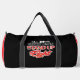 This black duffle bag features a powerful and motivational text design that reads "FALL DOWN SEVEN TIMES STAND UP Eight" with "Eight" in a bold, red script. This inspiring design is perfect for reminding yourself or others about perseverance and resilience. Edit color of the bag caps and body in the Design tool to your favored colors