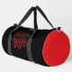 This Red Duffle Bag features a bold red graphic at the top: two crossed firefighter axes with a star in the center. Below this, the word "Firefighter" is written in a stylized script font, with "WIFE" directly underneath in a similar font, accented by small stars. The design honors the wife of a firefighter.