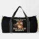 This amusing black and olive green duffle bag features a happy beaver holding a log, with the witty phrase "GOOD WOOD MAKES A BEAVER HAPPY." It’s a playful and cheeky design for those who enjoy double entendre and a good laugh. Perfect for anyone with a bold sense of humor or a fondness for beavers. Edit color of the bag caps and body in the Design tool to your favored colors.