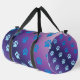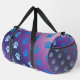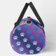 This stylish duffel bag showcases a captivating gradient patterned bag blending shades of purple and blue, adorned with colored paw prints in lighter blue. It's a practical pet accessory and functional travel gear for everyday use.