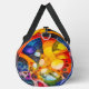 Collection de Hystrix Little Thoughts® - Sacs et pochettes Universe Fractal. Respire, étirer et bouger en couleur. Ce grand sac en duffel est doté d'une impression fractale tout-en-un qui éclate d'énergie audacieuse et de formes fluides. Léger et durable, il est le compagnon parfait pour la salle de sport, les déplacements, ou une routine quotidienne dynamique. Que vous soyez en train de faire vos valises pour un cours de yoga ou une escapade créative, chaque étape devient un coup de pinceau dans votre univers personnel. Vis de manière vivante. Voyage fractalement.