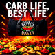 This black duffle bag features a fun, food-themed design with a bowl of pasta garnished with tomatoes and herbs, and the text "LIFE is BETTER with PASTA." This quirky design is perfect for Italian food lovers and pasta enthusiasts. Edit color of the bag caps and body in the Design tool to your favored colors.
