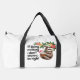 This white duffle bag features a whimsical cartoon of a sloth hanging from a branch, holding a drink in a coconut, surrounded by tropical flowers. The text reads, "If doing nothing is wrong i don't wanna be right." This humorous design is perfect for those who embrace a laid-back lifestyle. Edit color of the bag caps and body in the Design tool to your favored colors.