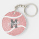 Ce porte - clé en acrylique de tennis mignon présente un graphisme de balle de tennis rose qui a une texture chic numériquement créée - personnaliser avec son nom et son numéro de monogramme ou de maillot - par katz_d_zynes