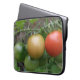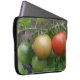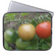 Ce superbe sac pour ordinateur portable présente une photo d'un tas de tomates mûries, dont une tomate rouge, orange et verte en cerise en ligne, poussant sur un plante de tomates dans un jardin de banlieue. La photo a été prise en utilisant la macro photographie pour un résultat détaillé.