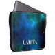 Un coque portable personnalisé avec un arrière - plan d'espace bleu. Ajoutez votre propre nom à ce produit en utilisant le modèle personnalisé.
