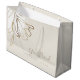 Sac en papier grand format personnalisé avec motif floral ivoire élégant. Design de luxe avec fleurs kaki dorées sur fond abstrait ivoire pour votre petite entreprise de bijoux ou de produits de beauté. Modifiez le texte avec l'outil d'édition Zazzle facile à utiliser ! Ajoutez le nom et l'entreprise. Visitez la boutique pour voir toute la collection. Il y a des agendas, des cahiers, des blocs-notes, des classeurs, des stylos, des porte-blocs et bien plus encore disponibles. Et bien sûr, les désinfectants et les masques sont également dans la boutique !