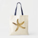 Fourre-tout blanc avec une image imprimée des poignées de bleu marine d'une étoile de mer et d'or.