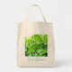 Sac durable vous encourageant à "Vivre Vert". Un gros plan de feuilles d'été verdoyants après une pluie. ~ Partie de la collection verte. ~