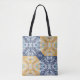 Sac fourre-tout monogrammé chic bleu et jaune.