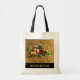 Ce sac fourre-tout coloré montre les outils de l'ouvrière couturière. Bobines lumineuses de fil dans des couleurs d'arc-en-ciel de support vert, rouge, rose, de turquoise, de jaune, d'or, bleu et orange près d'une bande, d'un dé, des boutons et des goupilles de mesure. Tous sont placés sur une image d'un arrière - plan brun de motif de toile de jute. Le texte lit : Approvisionnements de couture. Il peut être customisé ou enlevé.