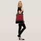 Ce sac fourre-tout est montré dans le plaid de Noël préféré des buffles noirs et rouges qui peut être utilisé toute l'année. Bracelets noirs, garniture noire et fond noir. Taille moyenne affichée. Customisez cet objet ou achetez tel que conçu. Image stock vecteezy.com